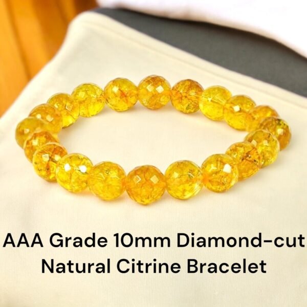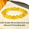 Premium Natural Citrine Diamond-Cut Faceted 10mm Bracelet – Lab-Certified AAA Grade Semi-Precious Gemstone Stretchable Unisex Bracelet for Success, Prosperity & Wealth